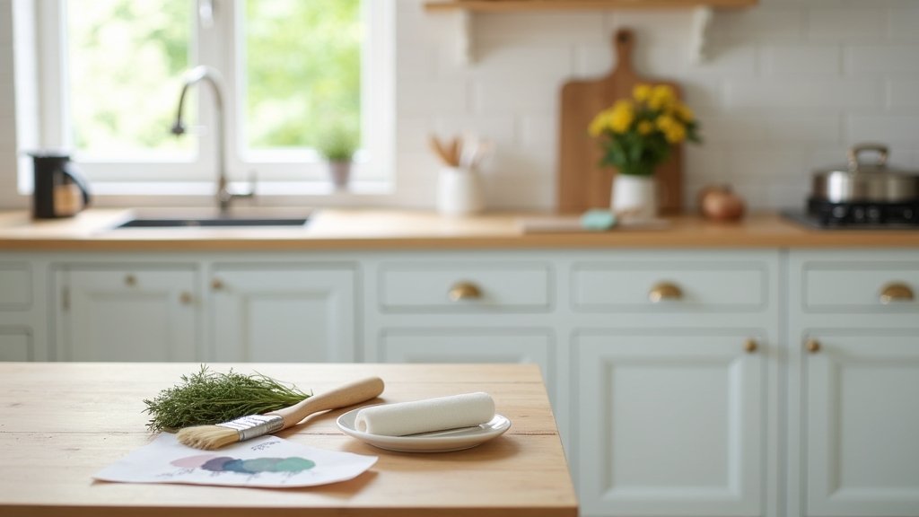 Wanna make your kitchen cabinets shine like a pro? Start by picking high-quality acrylic latex paint—it’s like a magical spell for your cabinets! Gather tools like sturdy brushes, a smooth roller, and painter’s tape for those crisp lines. Don’t forget to clean and degloss your cabinets first! Sand them down for that glassy finish. Then, apply thin, even coats, allowing plenty of drying time. Trust me, you’ll feel like a kitchen wizard! Let’s dive deeper into each step!