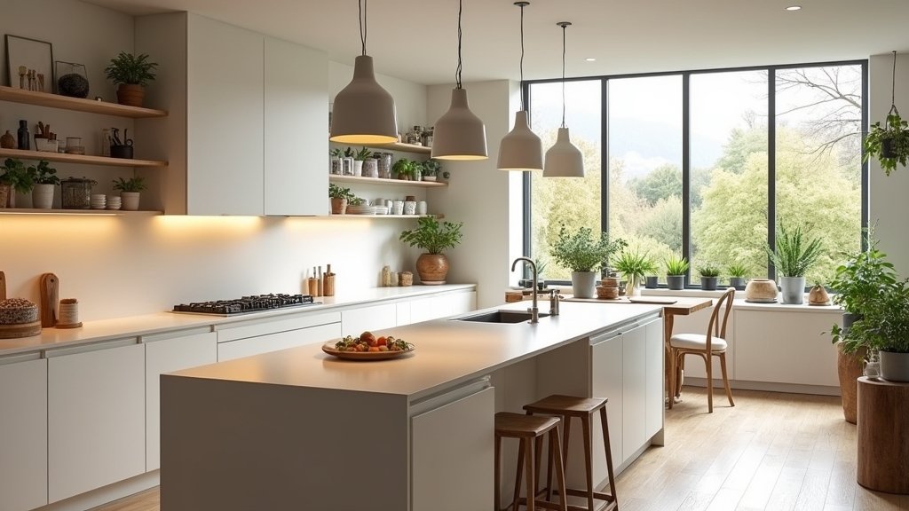Don’t forget about your countertops—mix smooth finishes with rustic wooden trays. Incorporate plants with vibrant green leaves to bring a refreshing change. How about a colorful ceramic bowl perfectly placed on the counter? It’s like a pop of joy! With these elements, you’ll create a stylish sanctuary where laughter and memories flourish. Ready to cozy up your space?