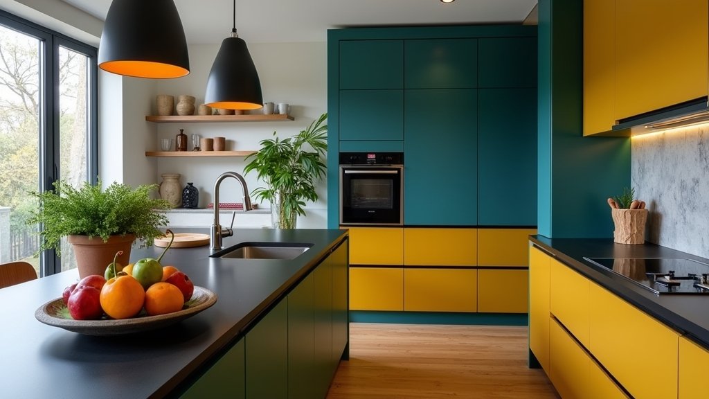 • Incorporating rich wood tones and colorful accents promotes a warm, lively kitchen environment, transforming cooking into a joyful experience.